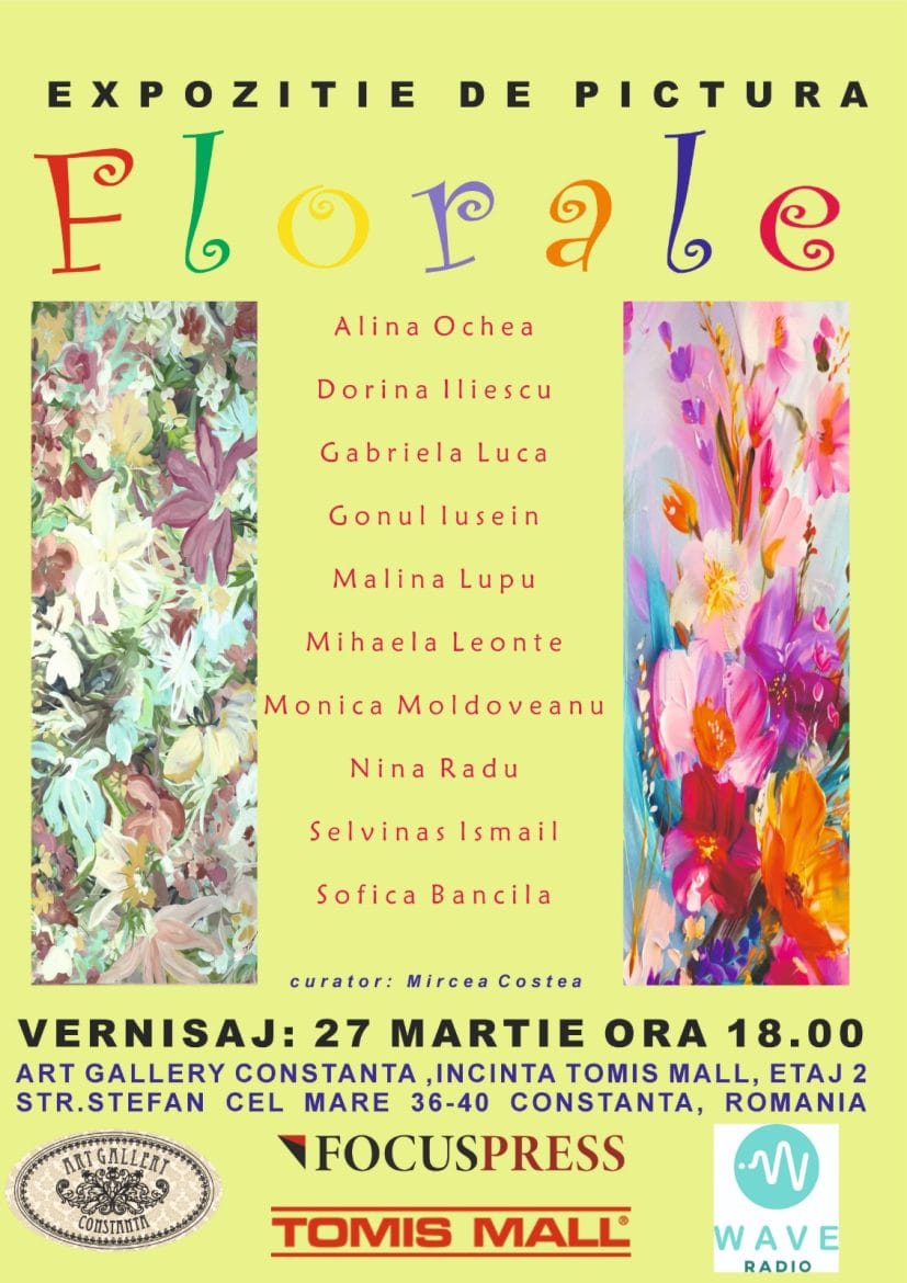 Un grup de doamne din județul Constanța aduce în municipiul-reședință de județ, vineri, 27 martie, de la ora 18.00, expoziția de pictură „Florale“, la Art Gallery Constanța, din incinta Tomis Mall – etajul II.