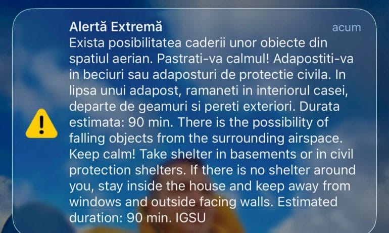 insert_link ActualitateRO-Alert la Tulcea: posibile căderi de obiecte din aer! today18 martie 2026 14