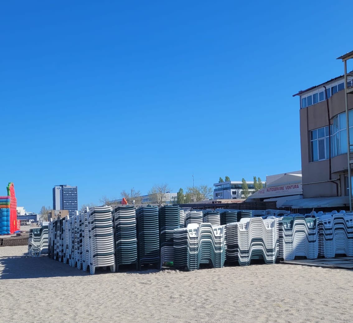 Mai mulți operatori de plajă au început deja amenajările: montează umbrele, pregătesc șezlongurile și aleile, și instalează facilități de agrement, precum toboganele gonflabile.